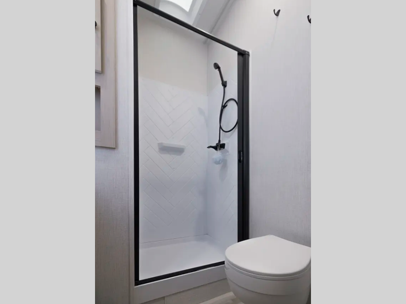 Each model is constructed with a vacuum bonded, welded aluminum structure, along with a PVC roof membrane, residential fiberglass insulation, and many durable construction materials. You will love the oversized opening windows in the living room, the walk-in shower in the bath, and the residential backsplash in the kitchen. The Climate Package helps extend your camping season and the Expedition Package includes many hassle-free amenities such as an outdoor shower, heavy duty slam latch baggage doors, and 4-point auto leveling!