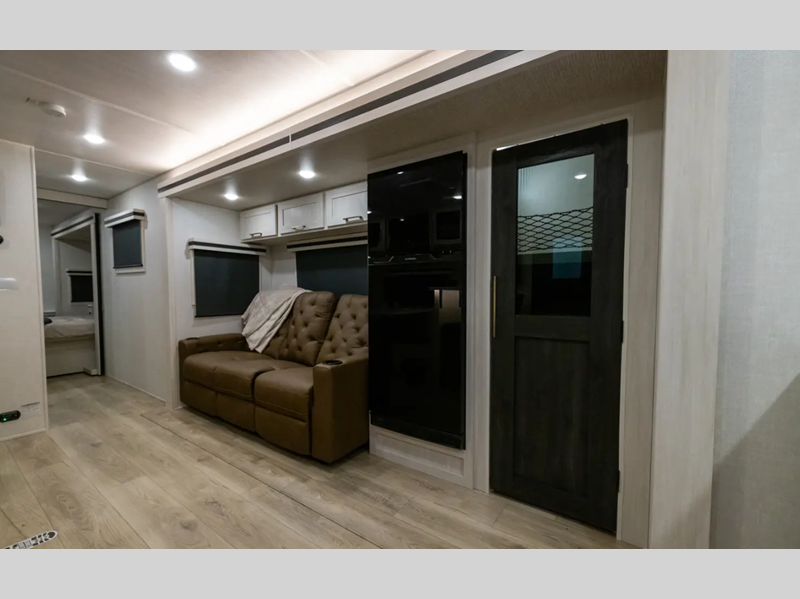 Sleeps 4 Slides 2 Length 38 ft 10 in Ext Width 8 ft Hitch Weight 845 lbs Dry Weight 8343 lbs Cargo Capacity 2902 lbs Fresh Water Capacity 40 gals Grey Water Capacity 60 gals Black Water Capacity 30 gals Available Beds Custom King Refrigerator Type 12V Black Glass Refrigerator Size 10 cu ft Number of Awnings 1 Water Heater Type Tankless AC BTU 15000 btu TV Info LR HD TV Awning Info 19' Electric with LED Lights Axle Count 2 Washer/Dryer Available Yes Shower Type Standard Electrical Service 50 amp Similar Floorplans