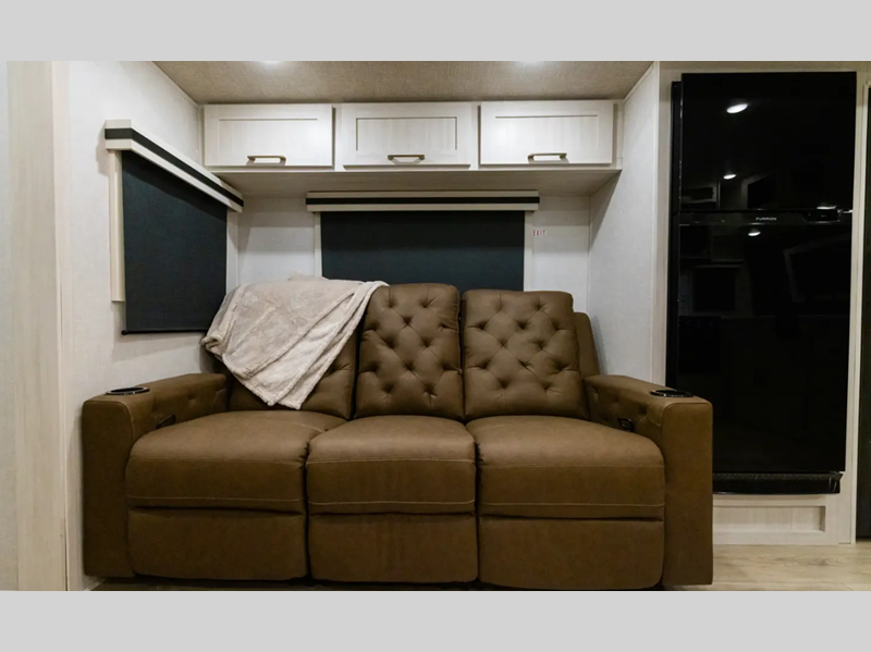 Sleeps 4 Slides 3 Length 38 ft 10 in Ext Width 8 ft Ext Height 11 ft 5 in Hitch Weight 935 lbs Dry Weight 8908 lbs Cargo Capacity 1500 lbs Fresh Water Capacity 40 gals Grey Water Capacity 60 gals Black Water Capacity 30 gals Available Beds Custom King Refrigerator Type 12V Black Glass Refrigerator Size 10 cu ft Number of Awnings 2 Water Heater Type Tankless AC BTU 15000 btu TV Info LR HD TV Awning Info 12' & 14' Electric with LED Lights Axle Count 2 Washer/Dryer Available Yes Shower Type Standard Electrical Service 50 amp Similar Floorplans