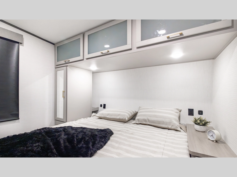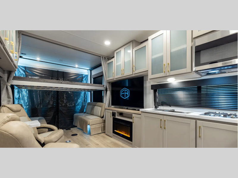 Sleeps 6 Fresh Water Capacity 102 gals Tire Size 16" Furnace BTU 35000 btu Fuel Capacity 40 gals Number Of Bunks 1 Available Beds King Refrigerator Type 12V Refrigerator Size 10.7 cu ft Convection Cooking Yes Cooktop Burners 3 Number of Awnings 1 Axle Weight 6000 lbs Garage Size 13 ft LP Tank Capacity 30 lbs Water Heater Type Tankless AC BTU 15000 btu Awning Info With LED Lights Axle Count 2 Number of LP Tanks 2 Shower Type Radius Solar Wattage 200 watts Similar Floorplans