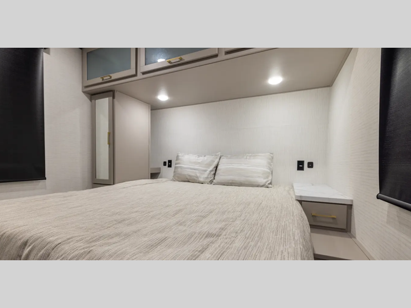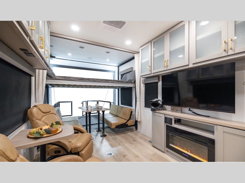 Sleeps 6 Length 34 ft 1 in Ext Width 8 ft 6 in Ext Height 12 ft 9 in Hitch Weight 1470 lbs GVWR 13470 lbs Dry Weight 8429 lbs Cargo Capacity 5041 lbs Fresh Water Capacity 102 gals Grey Water Capacity 82 gals Black Water Capacity 42 gals Tire Size 16" Furnace BTU 35000 btu Fuel Capacity 40 gals Number Of Bunks 1 Available Beds King Refrigerator Type 12V Refrigerator Size 10.7 cu ft Convection Cooking Yes Cooktop Burners 3 Number of Awnings 1 Axle Weight 6000 lbs Garage Size 16 ft 1 in LP Tank Capacity 30 lbs Water Heater Type Tankless AC BTU 15000 btu Awning Info With LED Lights Axle Count 2 Number of LP Tanks 2 Shower Type Radius Solar Wattage 200 watts Similar Floorplans